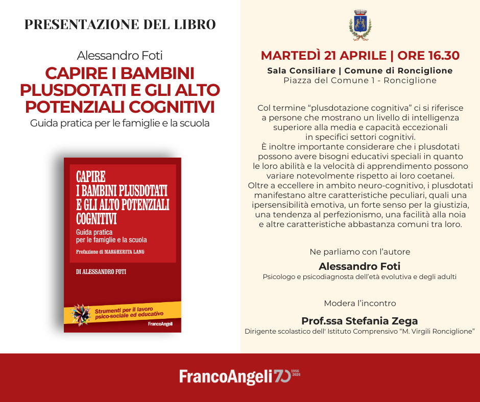 In questo spazio è possibile trovare, mese per mese, informazioni utili su presentazioni, convegni, seminari, tavole rotonde, organizzati in tutta Italia, direttamente dalla FrancoAngeli o con la sua collaborazione.